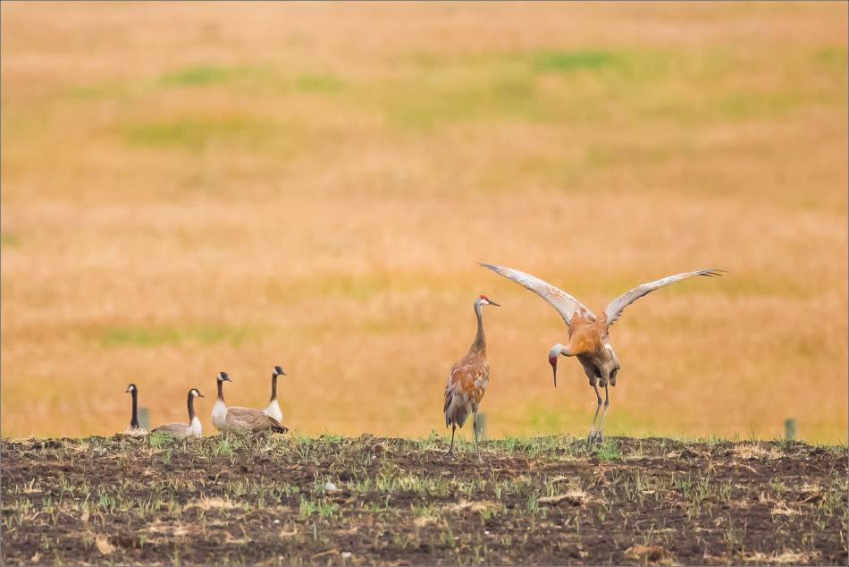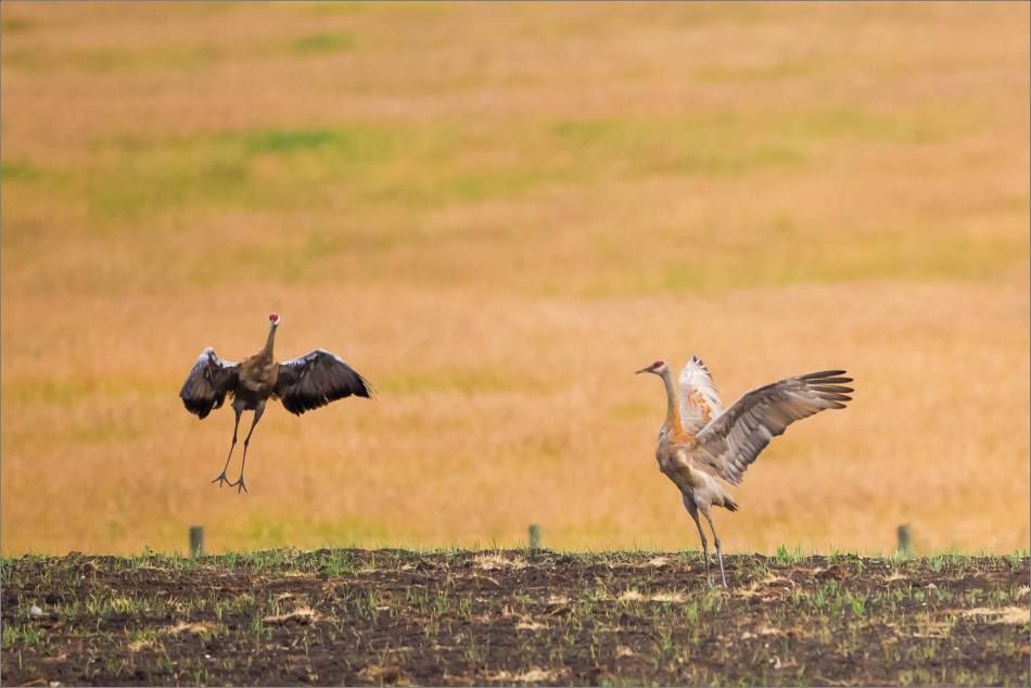 Sandhill crane couples dance with each other. I found this pair in a field west of Bragg Creek and was lucky to be able to watch them.