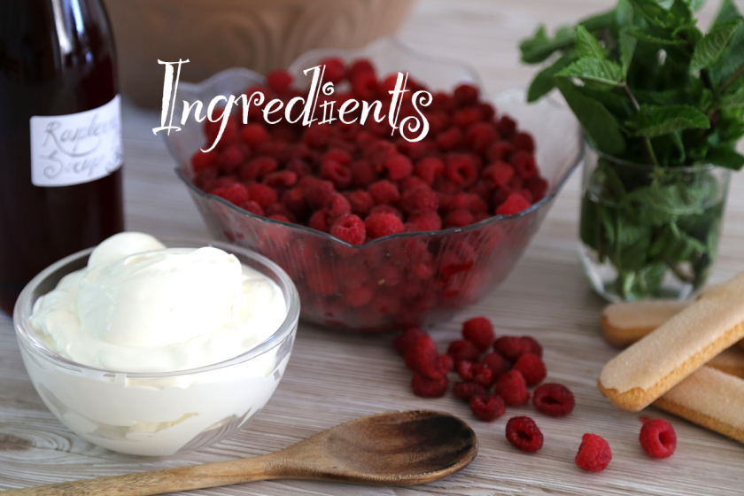 Mix the mascarpone and the curd cheese together and put half the mixture in a separate bowl. Stir in a couple of handfuls of raspberries and a dollop of sirup into to one of the bowls to create the raspberry creme. Lay the sponge fingers into the form (25x15cm) and soak…